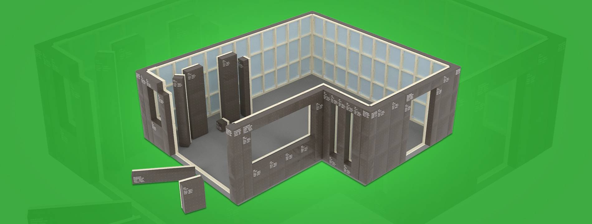 Systemet baserer seg på C/C 300 mm. Systemet består av hjørn og vegg elementer .